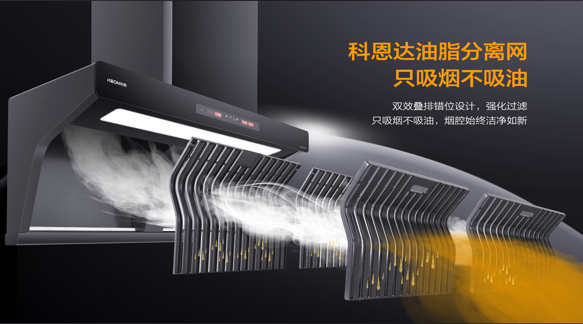 2023年,科恩免清洗煙機(jī)問(wèn)世,科恩達(dá)網(wǎng)板再添核心技術(shù),科恩達(dá)油脂分離網(wǎng)就此誕生。科恩達(dá)油脂分離網(wǎng)采用易潔太空壓鑄鋁材,經(jīng)過(guò)酸洗-噴砂工藝加之特氟龍噴涂最后高溫?zé)Y(jié),不僅不沾油、易清潔更好打理。其采用獨(dú)特的多層疊排U型錯(cuò)層結(jié)構(gòu)設(shè)計(jì),實(shí)現(xiàn)油脂分離度高達(dá)96%以上(第三方權(quán)威機(jī)構(gòu)測(cè)定),它在高效解決油煙油脂分離和冷凝的同時(shí),還能很好地起到阻燃隔火的效果,更好解決廚房安全隱患,徹底告別煙機(jī)內(nèi)部清洗難題,保證煙機(jī)持久大吸力,延長(zhǎng)煙機(jī)使用壽命。