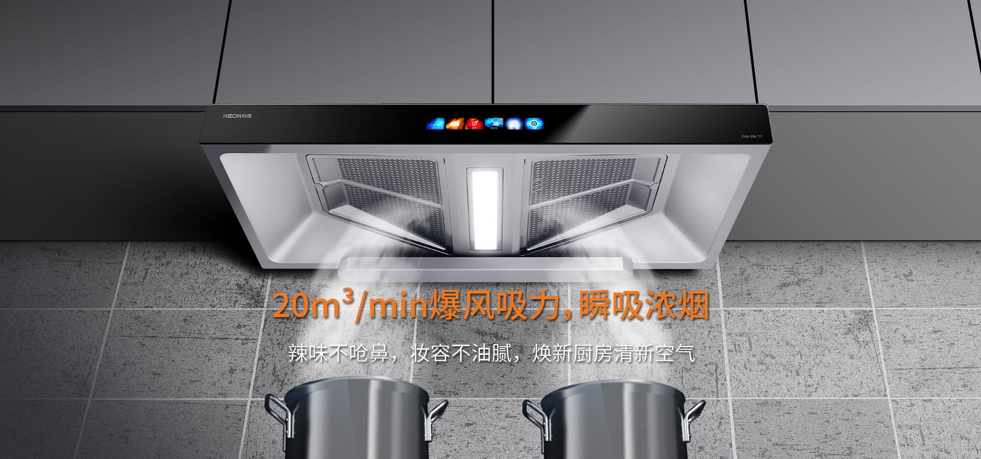科恩T71潛艇式油煙機,能夠輕松“隱身”于廚房空間,不占用過多的空間,同時又能展現出簡潔大方的美感。其蝠翼式雙腔凈吸設計,不僅更具科技感,還能實現高效凈吸。雙腔凈吸的優勢在于能夠更精準地捕捉油煙,確保廚房空氣清新,讓人們凈享廚房生活。