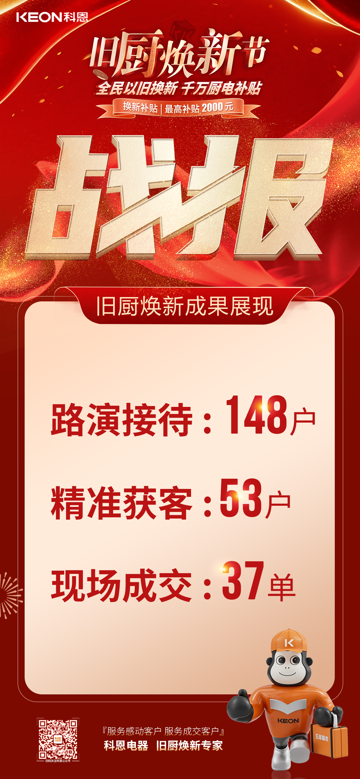 2025年國家“以舊換新”政策持續(xù)發(fā)力,科恩積極響應,開展舊廚煥新節(jié)活動。全民以舊換新,領千萬廚電補貼。此次舊廚煥新路演行動,不僅帶動廚房消費升級,更是連接企業(yè)與用戶的溫情紐帶。通過線下沉浸式體驗,讓消費者直觀感受智能廚電帶來的健康生活升級,以一份亮眼的成績單印證了“科技煥新生活”的市場號召力!