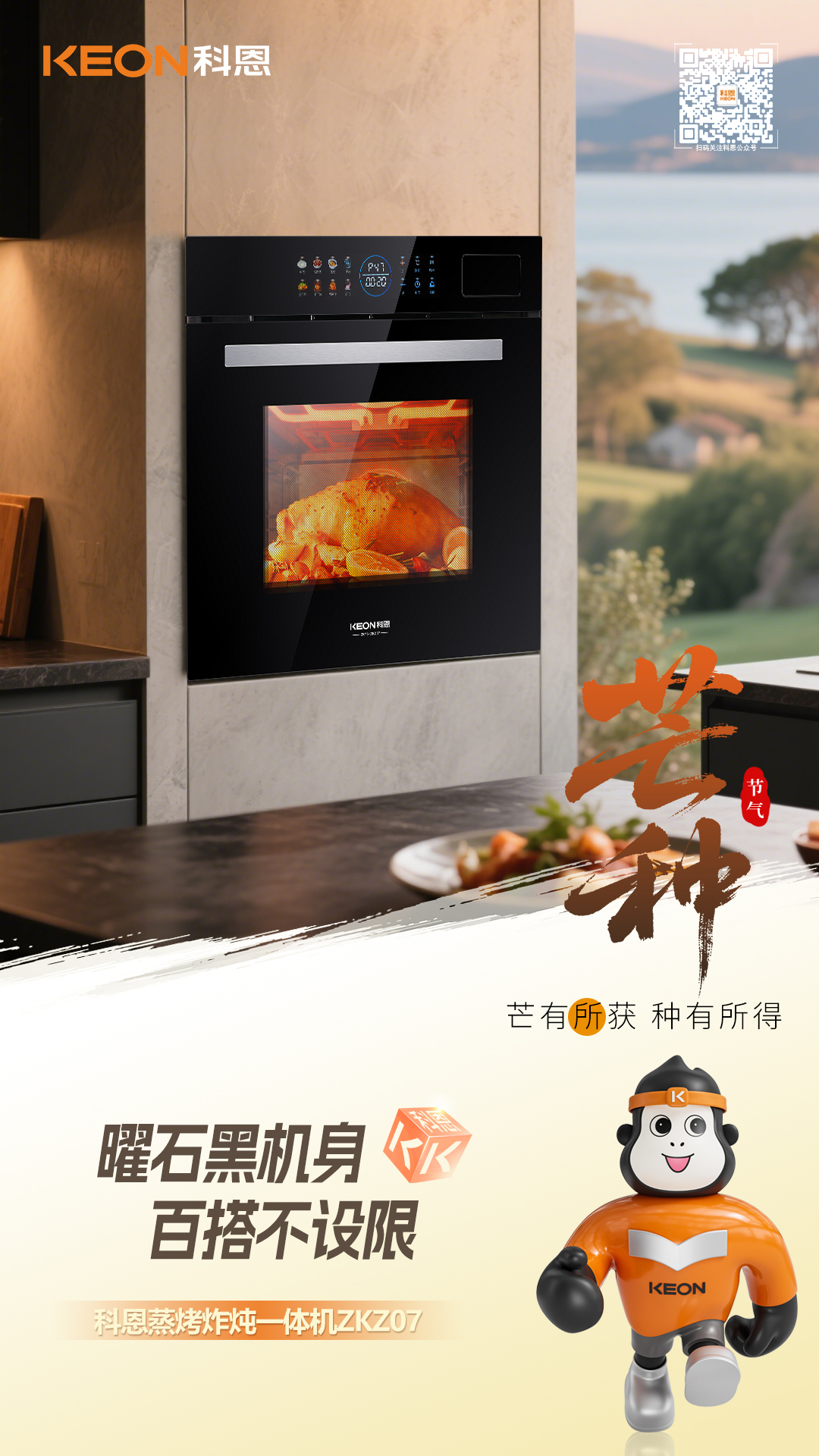 忙有所獲,種有所得。麥浪翻滾的芒種時節,廚房也該迎來全新蛻變,科恩以舊換新計劃,讓升級變得更簡單。選擇ZKZ07蒸烤炸燉一體機, 就是選擇品質生活,讓這個收獲的季節 給生活多一重美味維度!