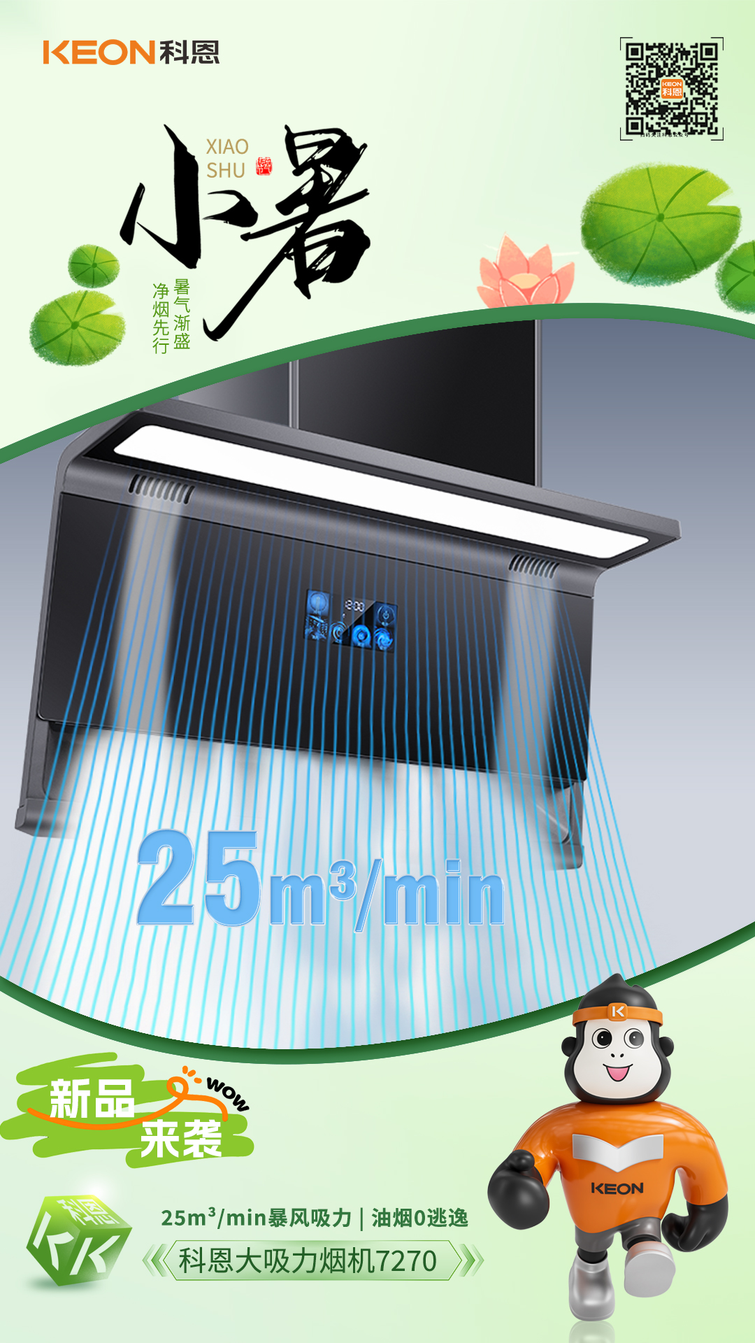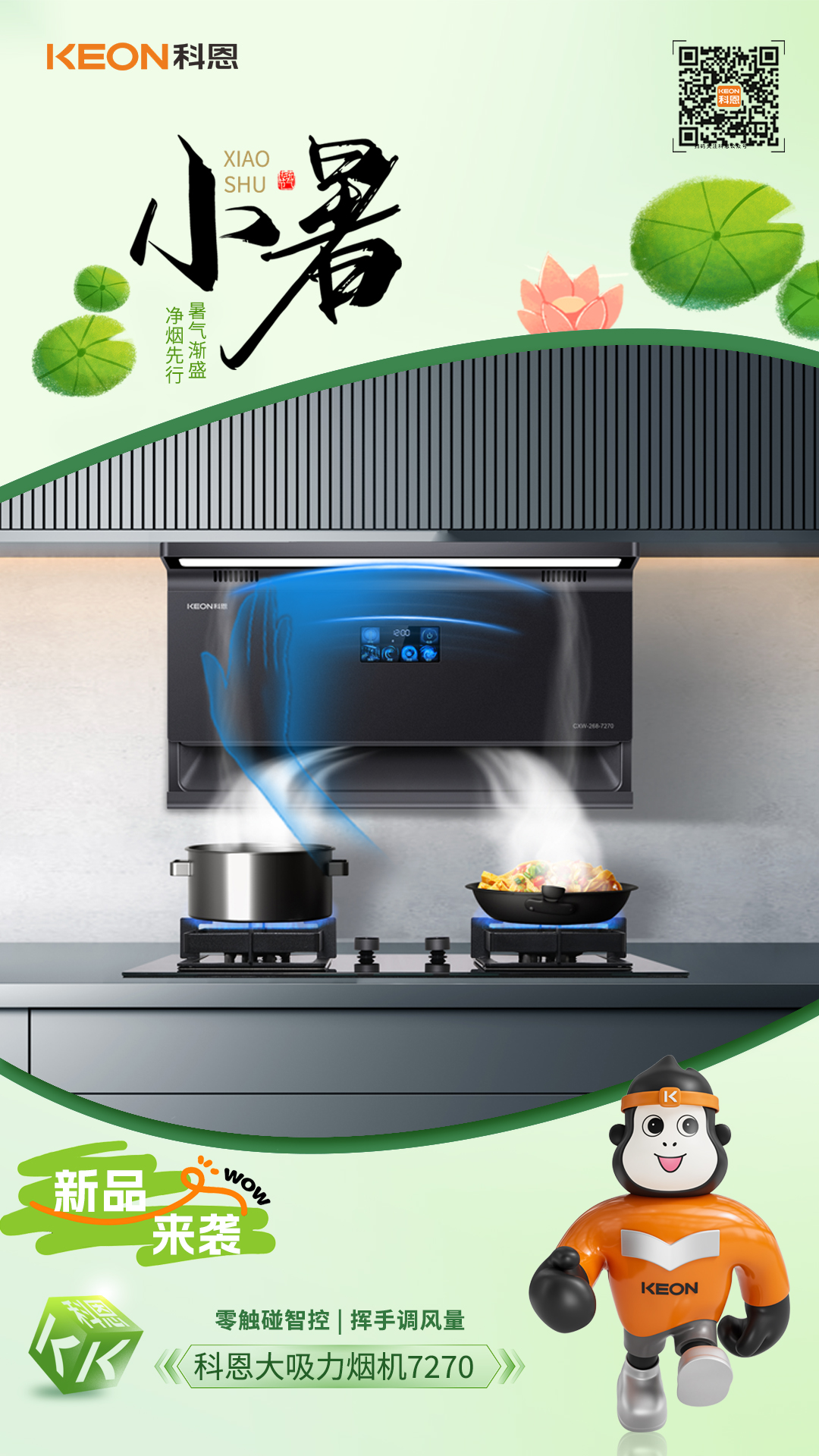 蟬鳴初起,熱浪翻涌。小暑時(shí)節(jié)廚房成高溫重災(zāi)區(qū),油煙升騰中包裹著暑氣更顯煩躁,科恩7270煙機(jī)攜25m³/min暴風(fēng)吸力來(lái)襲,為廚房筑起清涼防線(xiàn),讓凈煙快一步,生活慢享受。
