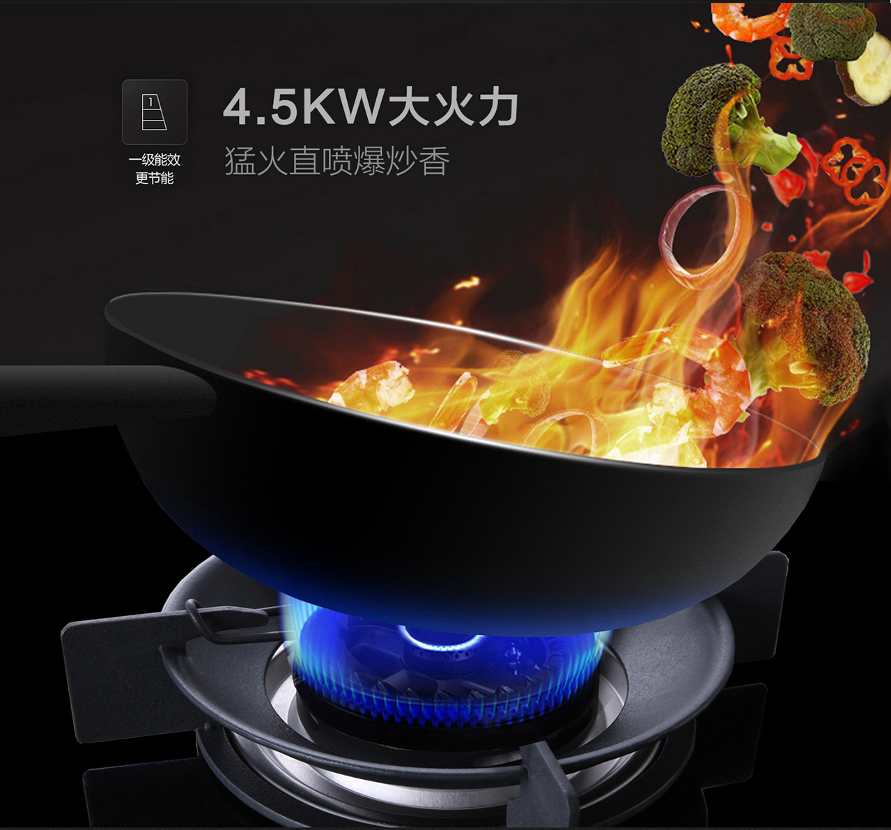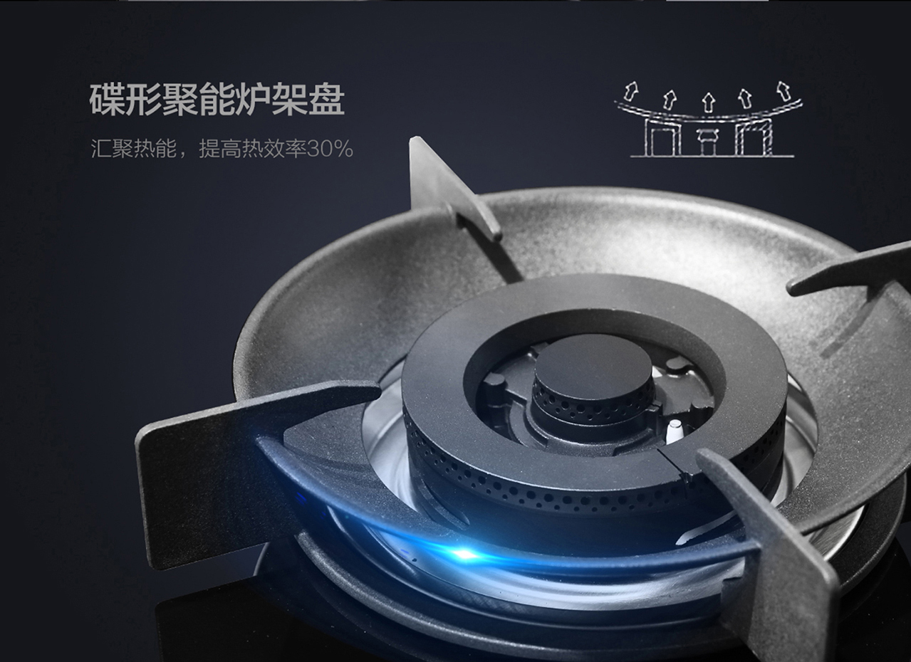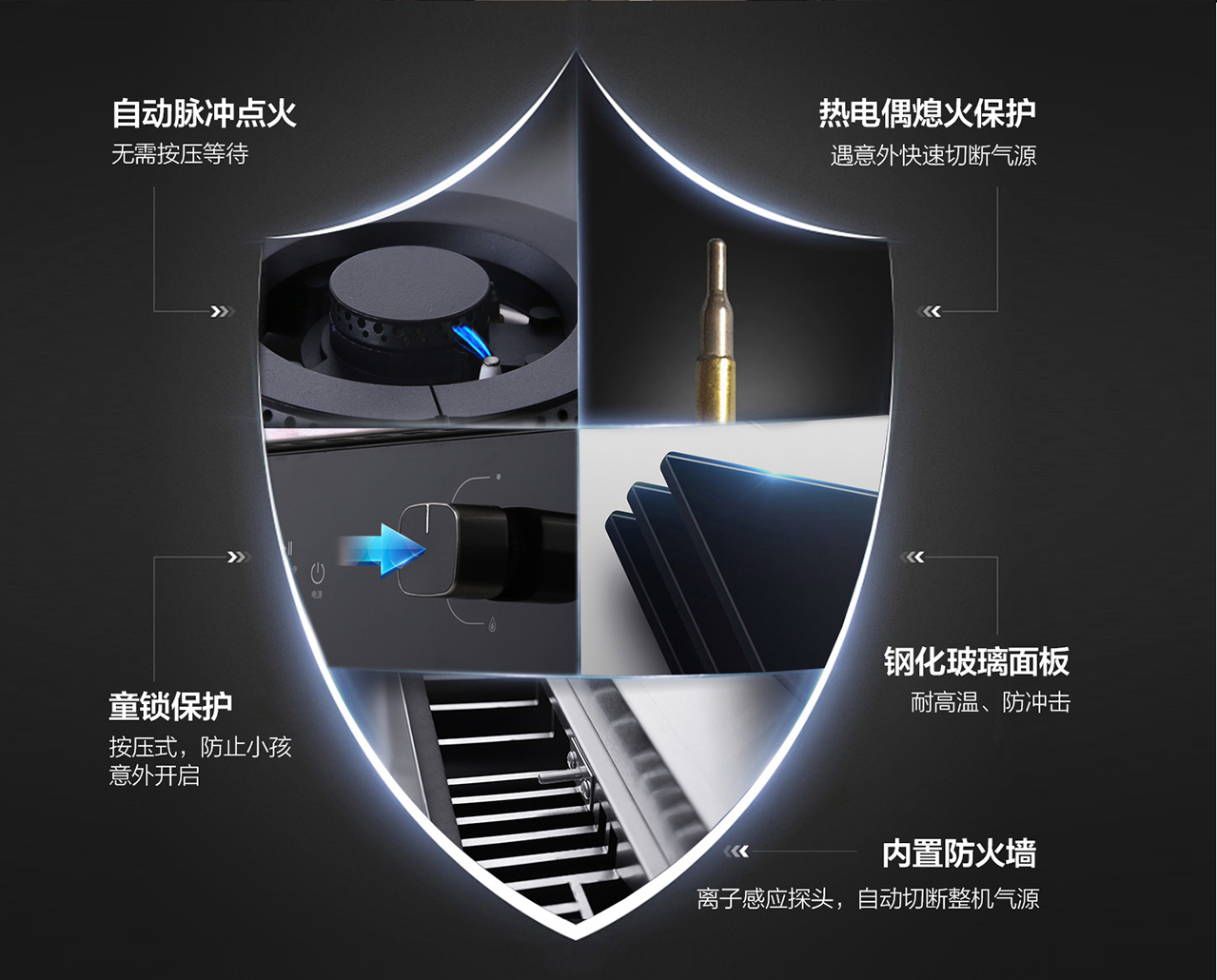 • 8MM加厚黑晶防爆鋼化玻璃灶臺面板,外觀時尚,易潔易打理。