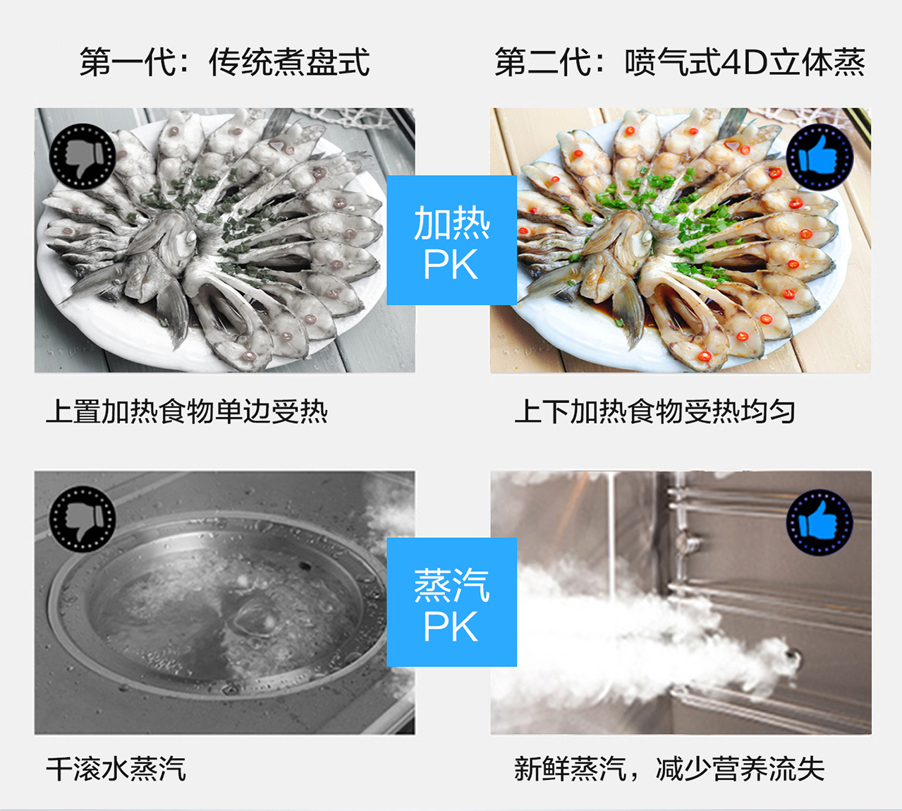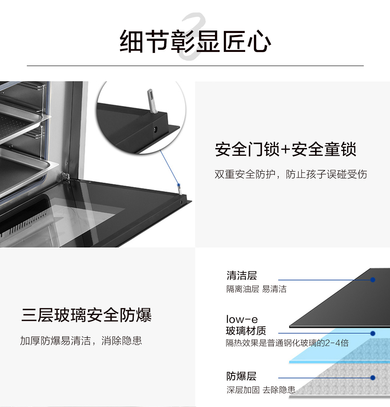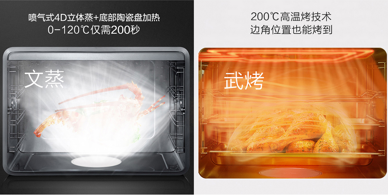 • 62L大容量食品級304不銹鋼內膽,上下4層設計,9種蒸烤模式。