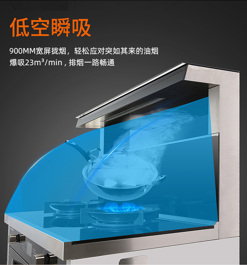 - 900MM寬屏攏煙,低空瞬吸,輕松搞定突如其來的油煙。