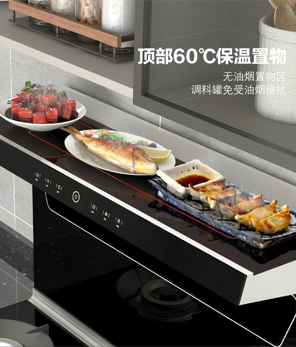 • 頂部60℃保溫置物功能,無油煙置物區,調料罐免受油煙侵擾