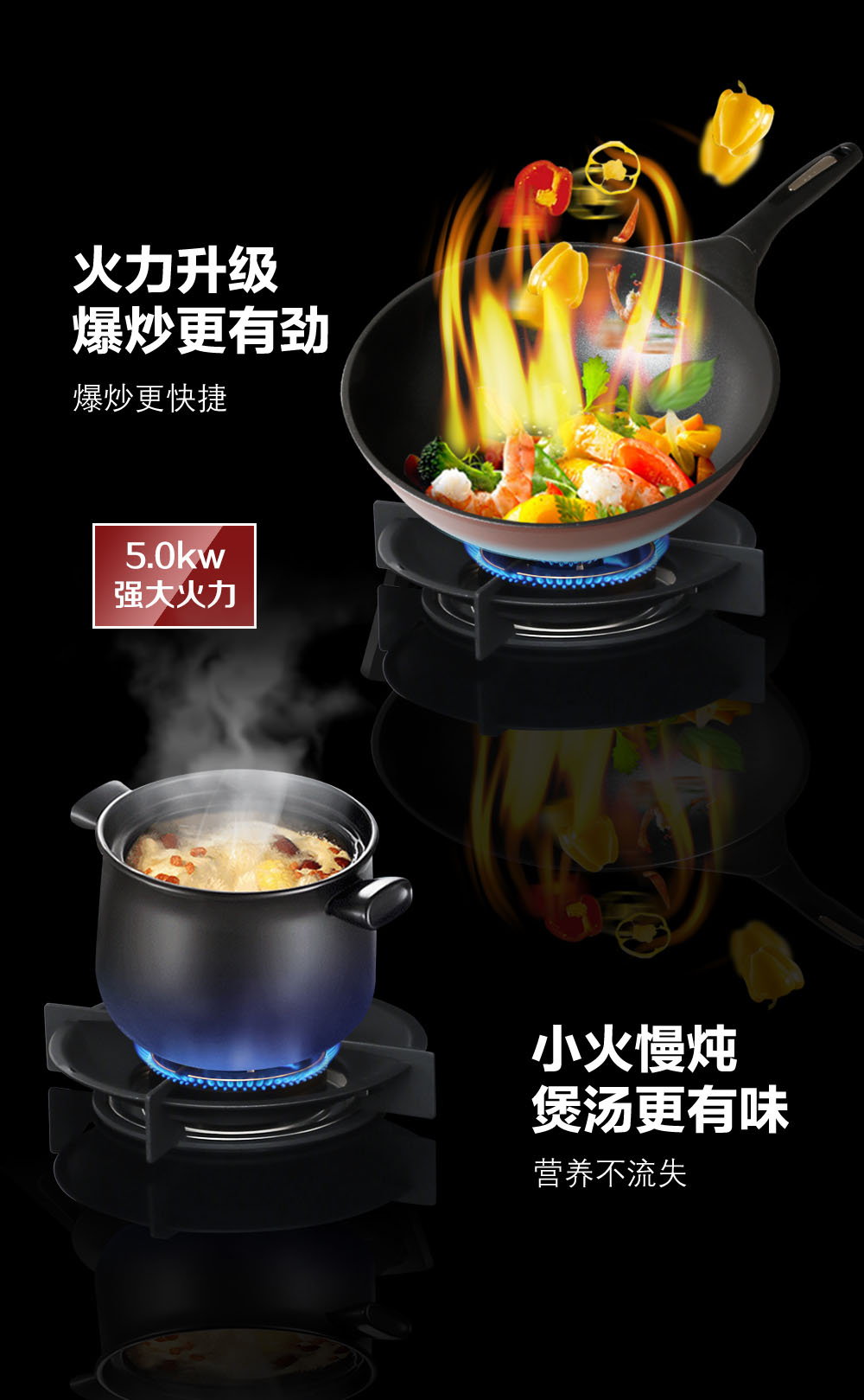 • 5.2KW火候,大火夠猛,小火更穩,爆炒更舒心