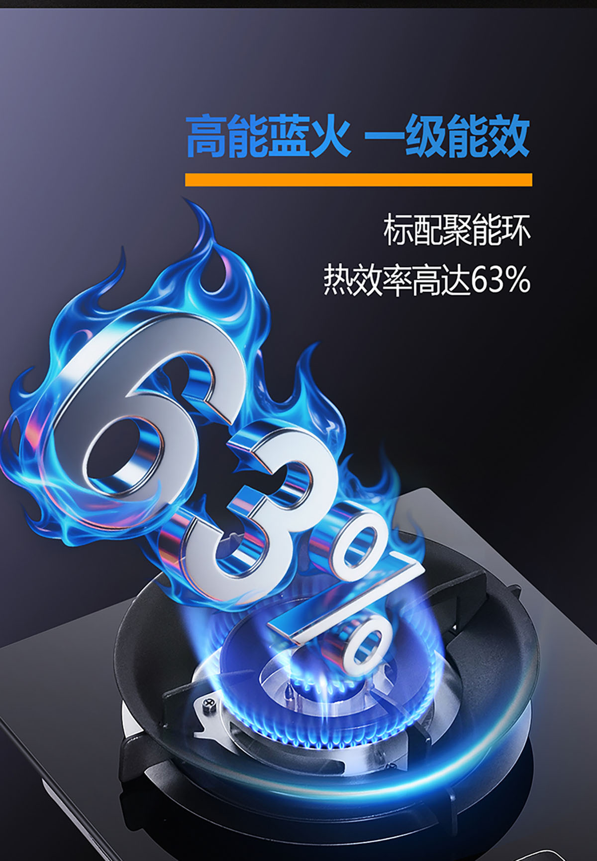 • 達(dá)克羅防腐防銹爐頭,純銅火蓋,熱效率達(dá)63%。