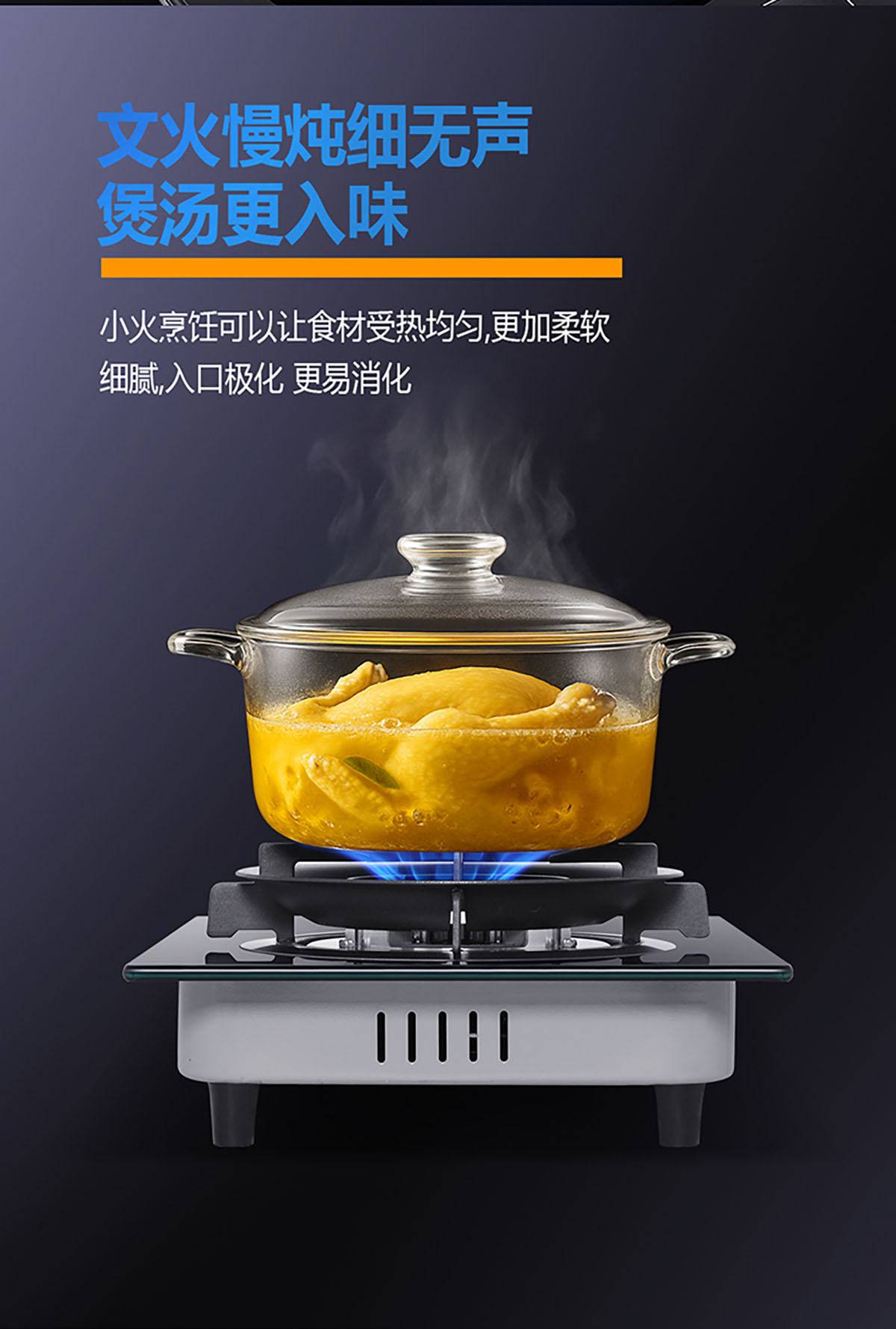材    質(zhì):玻璃面板、達(dá)克羅無瓷化工藝爐頭、搪瓷鍋架