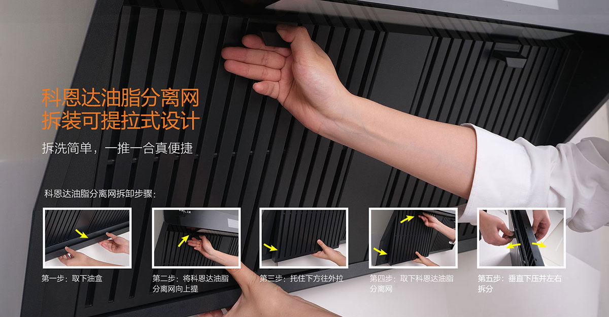 - 科恩達油脂分離網便捷拆裝設計,表面易潔工藝,拆洗簡單