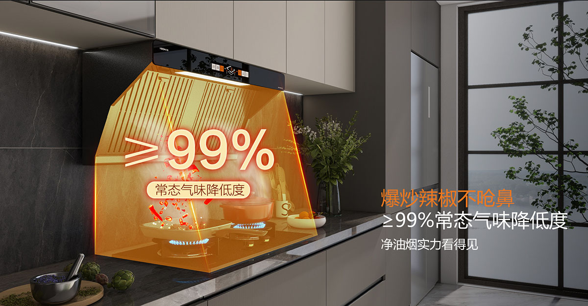 - 颶風大吸力,≥99%常態氣味降低度,爆炒辣椒不嗆鼻