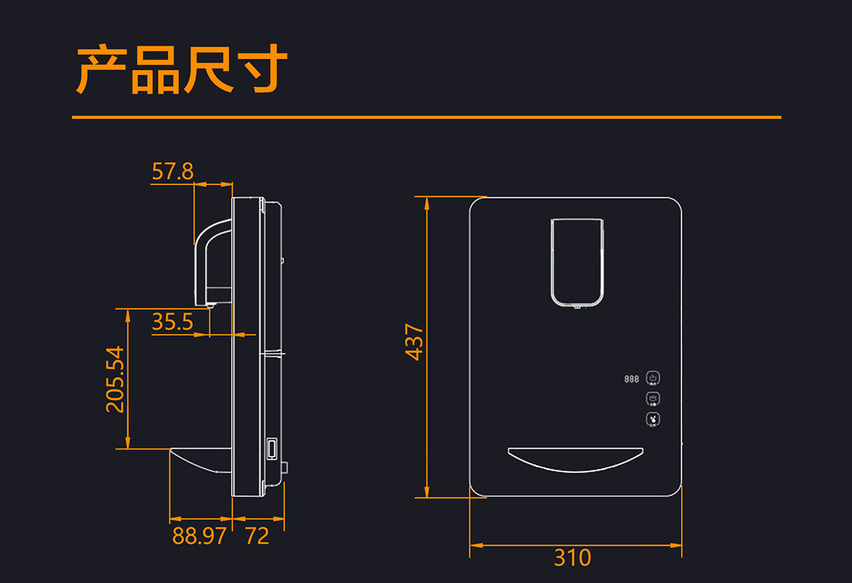 外形尺寸:310x437x(72+88.97)mm