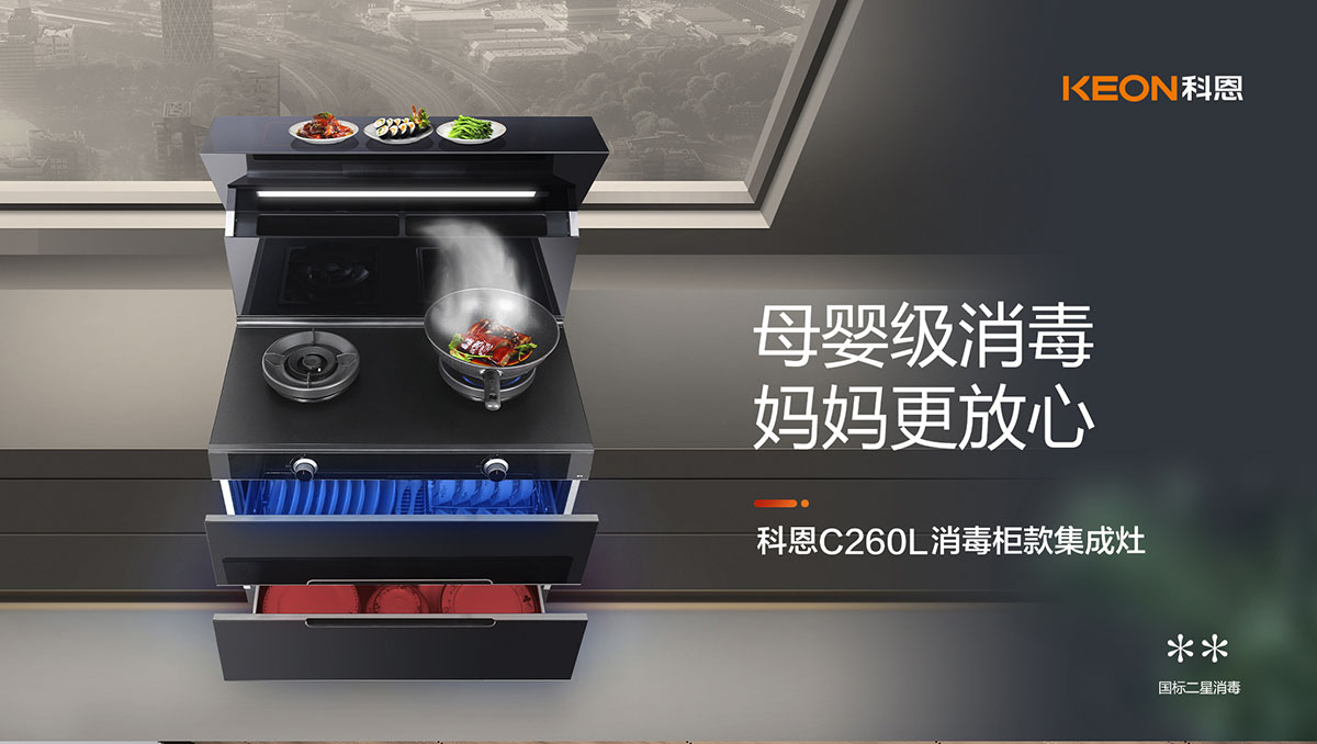- 120L大容量消毒柜,采用臭氧與紫外線雙重消毒