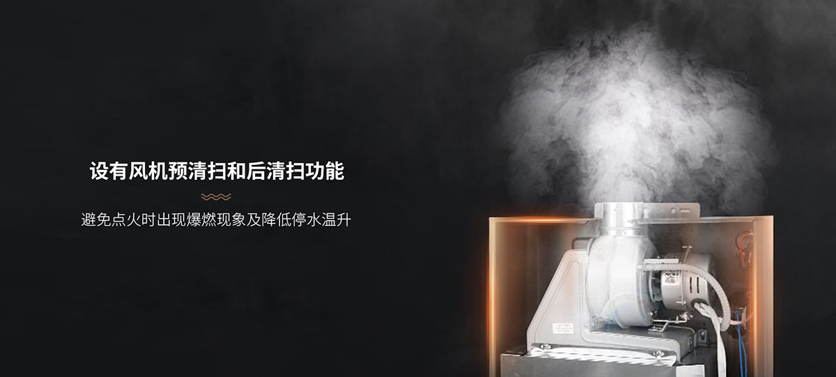 - 設有⻛機預清掃和后清掃功能,避免點⽕時出現爆燃現象及降低停⽔溫升