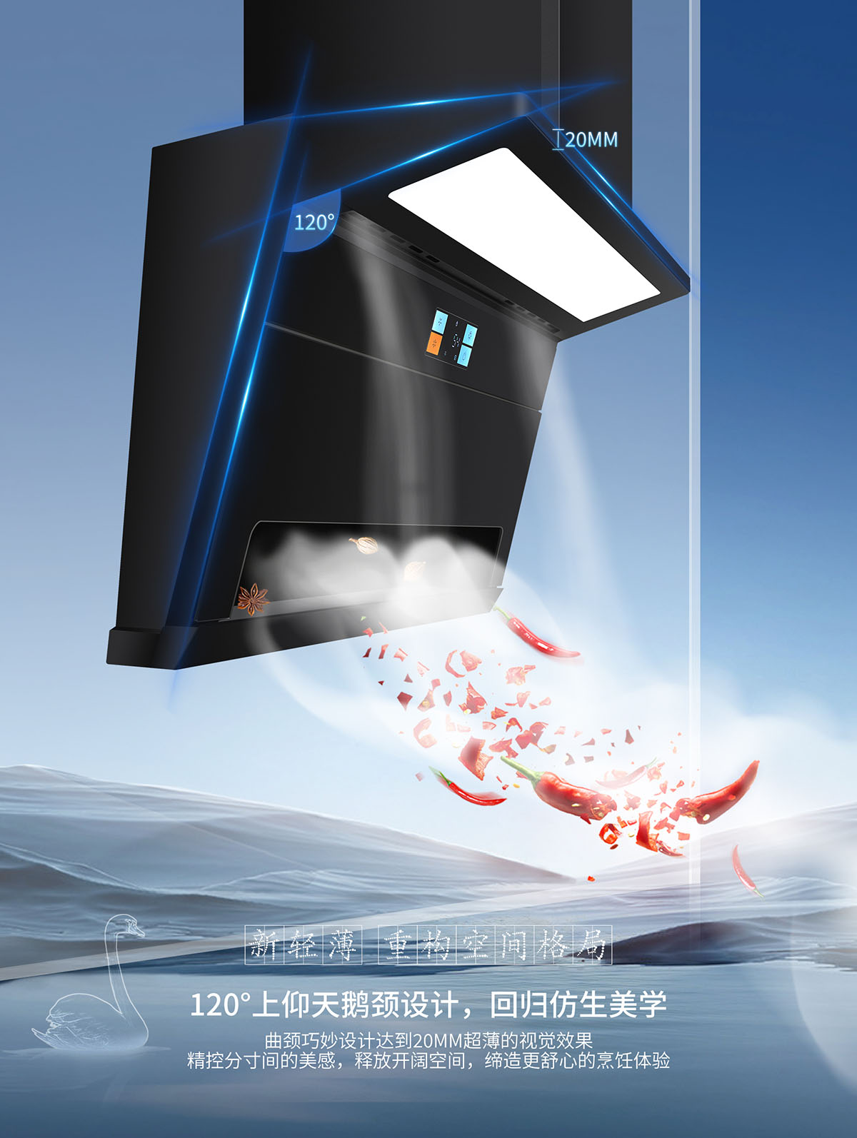 - 磁吸上翻式科恩達(dá)導(dǎo)煙板,減震防撞,清潔更便捷