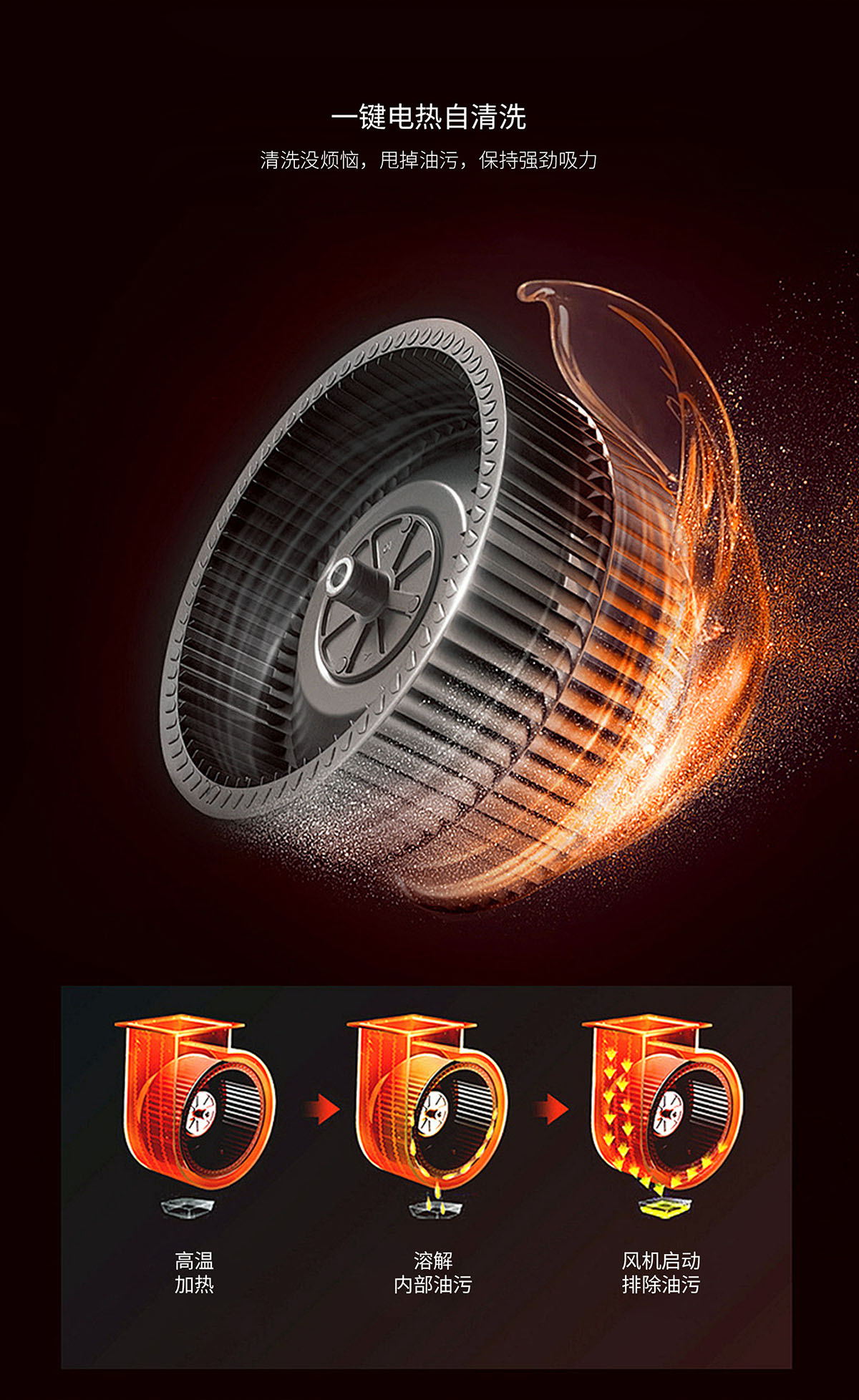 - 電熱自清洗,甩掉油污,保持強(qiáng)勁吸力