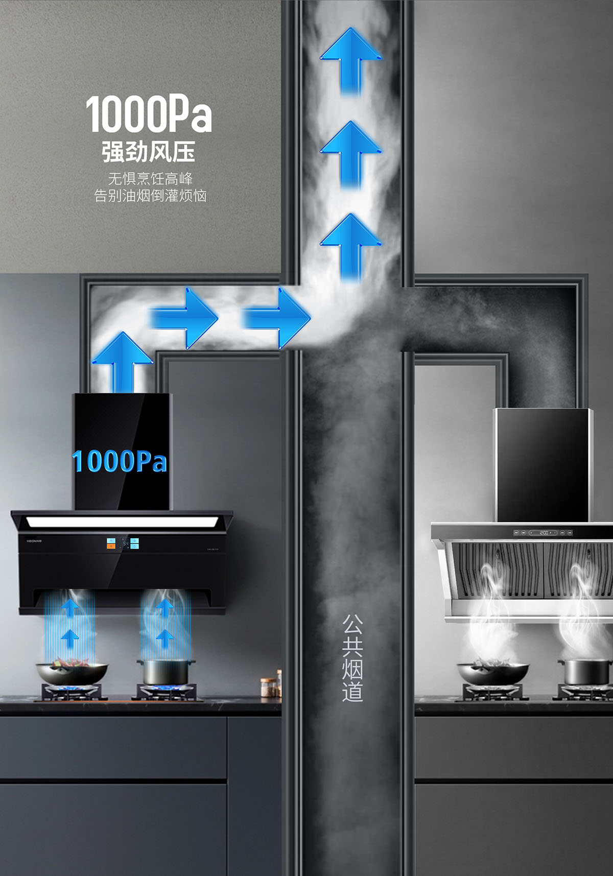 - 1000Pa大風(fēng)壓,告別油煙倒灌煩惱