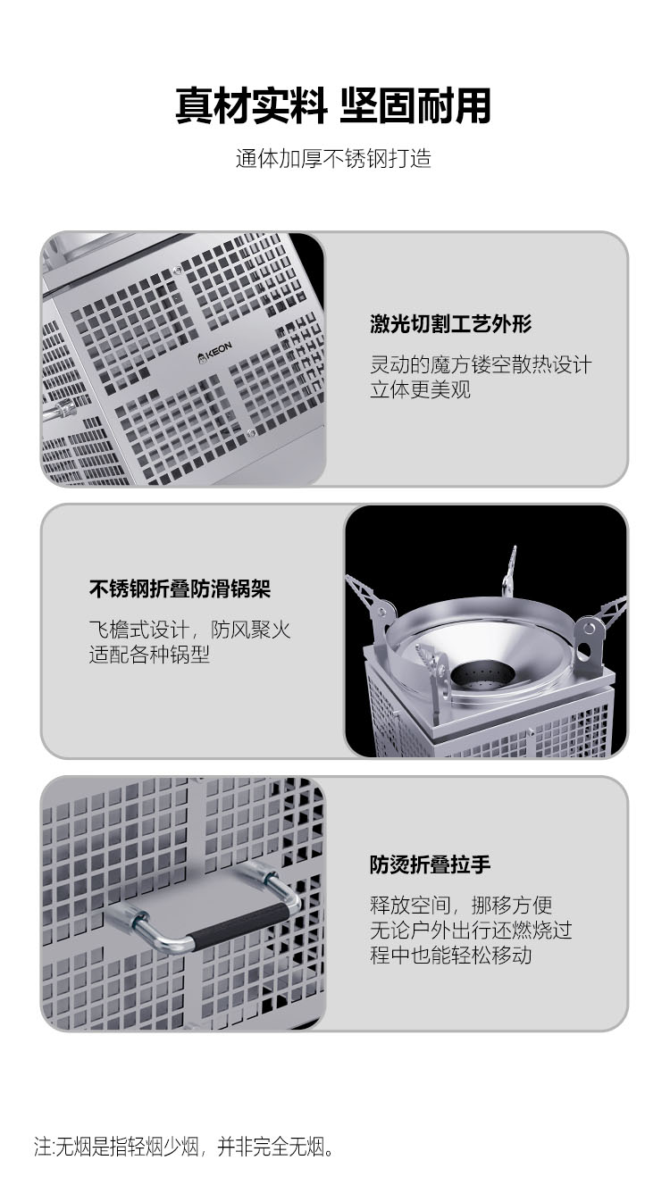 • 3D繞流爐膛,科學供氧,猛火無煙