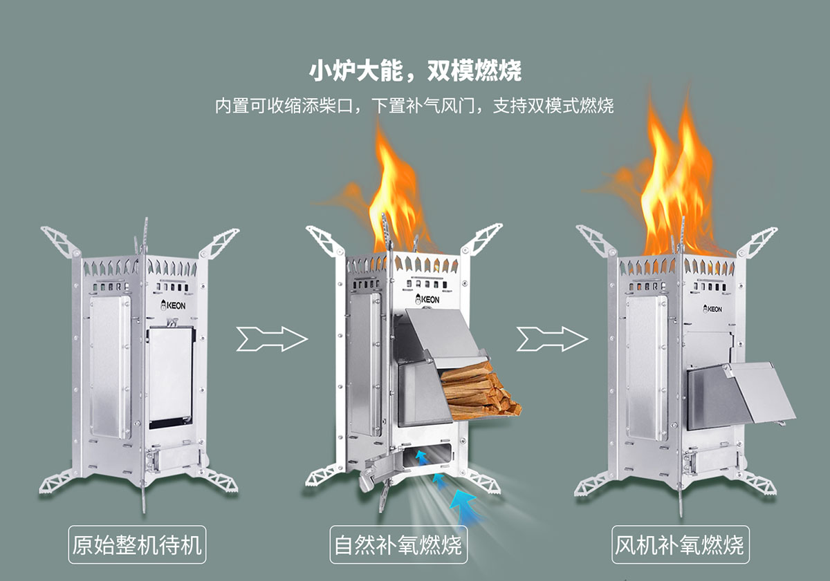 - 內(nèi)置可收縮添柴口,下置補(bǔ)氣風(fēng)門,支持雙模式燃燒