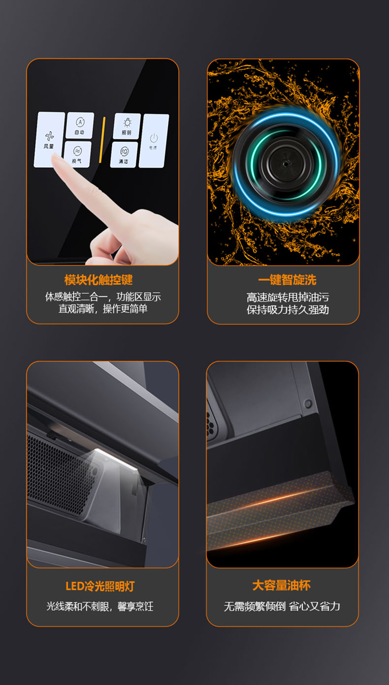 - 28m³/min颶風(fēng)吸力,爆炒瞬間吸凈油煙