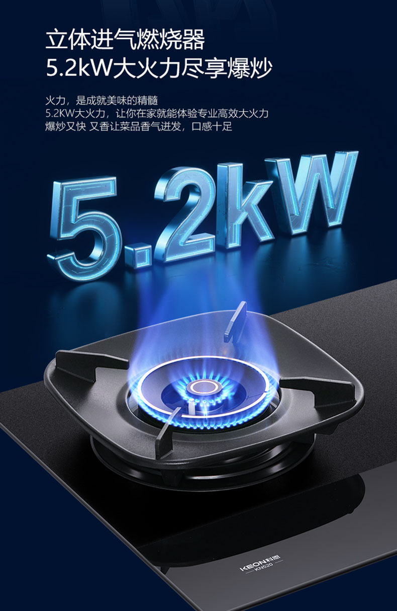• 三噴引射,立體進氣,5.2kW大火力盡享爆炒
