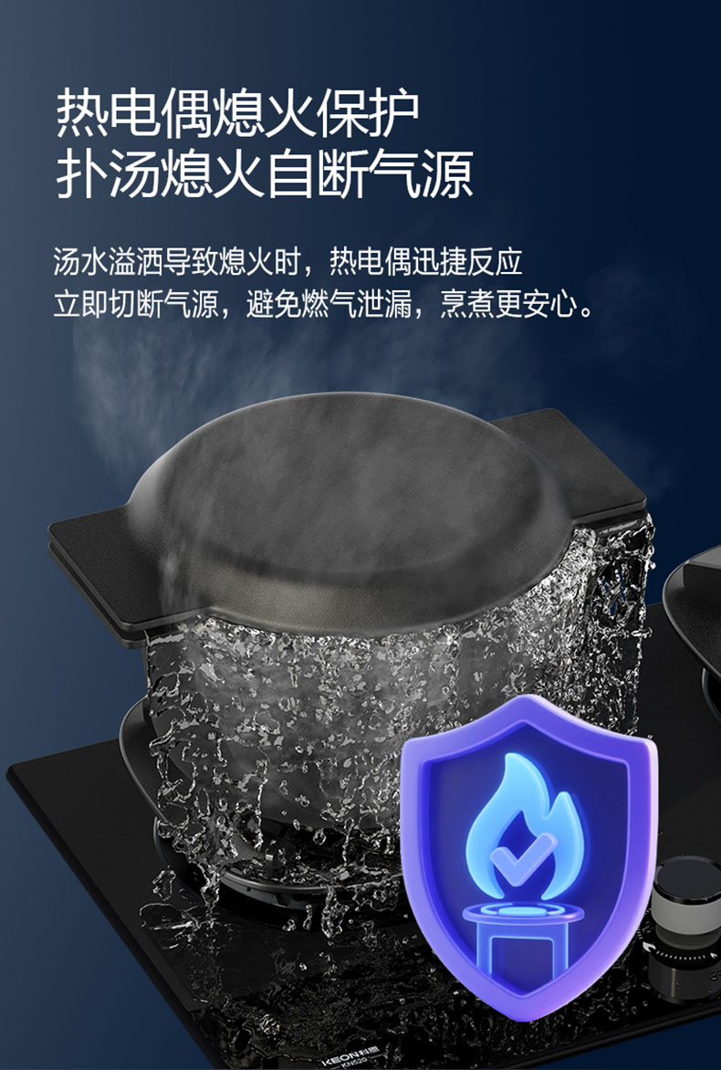 • 意外熄火保護,火滅即刻切斷氣源,保障廚房安全