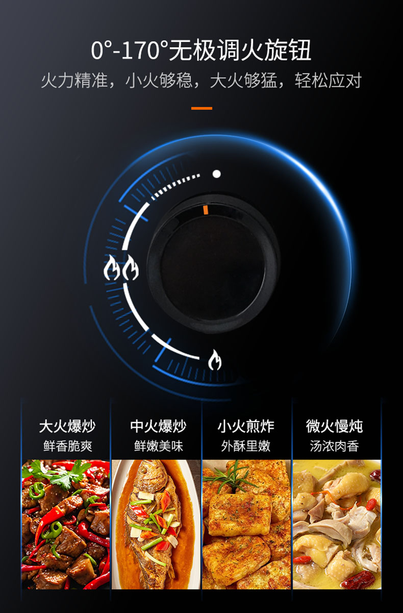 - 0°-170°無(wú)極調(diào)火旋鈕,火力大小精準(zhǔn)控制