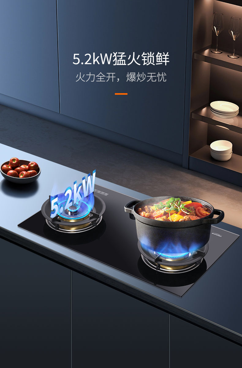 - 5.2kW猛火鎖鮮,火力全開(kāi),爆炒無(wú)憂